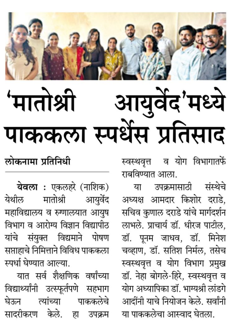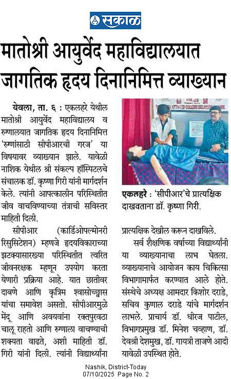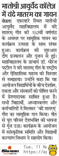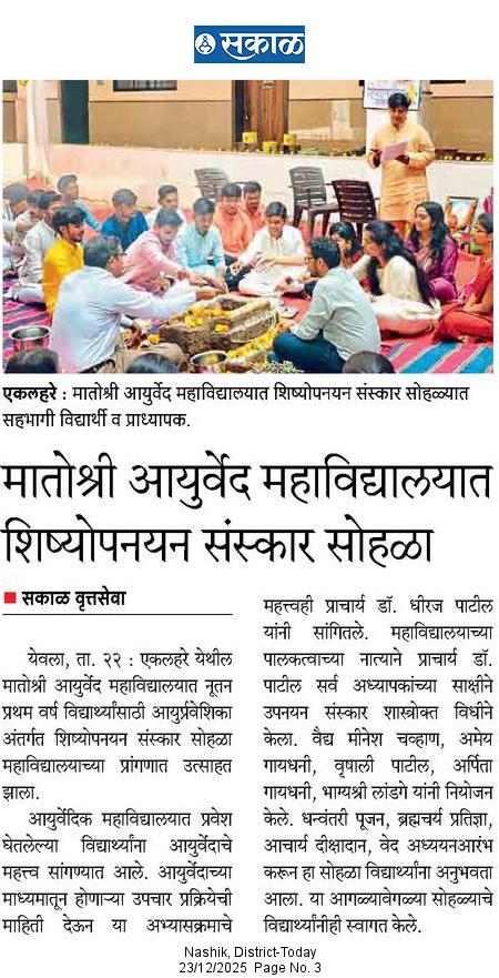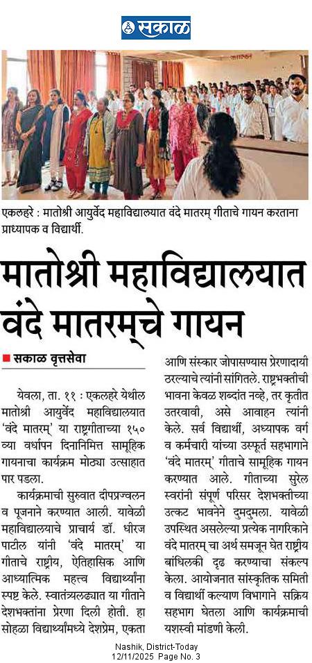 Matoshri Ayurved College and Hospital, Eklahare, Nashik